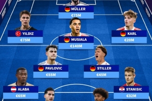 拜仁青训出身现役球员身价最高阵容(取历史最高身价,总价5.71亿欧):