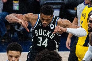 体育资讯11月4日讯 NBA常规赛,雄鹿117-115击败步行者,字母哥翻身后仰跳投绝杀。