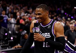 据统计,本赛季威少出任首发的比赛,场均19.3分9.8板6.8助攻,场均进2.8记三分,三项命中率53/50/89%。
