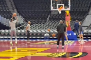 据勇士随队记者Dalton Johnson报道,巴特勒刚刚进行了赛前投篮训练,目前他因下背部酸痛仍被列为出战成疑。