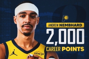 至此,内姆哈德常规赛生涯总得分突破2000大关。