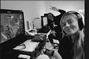 米歇尔·格兹格社媒晒照,她与库尔图瓦在家中联机打游戏,配文:“游戏之夜。”