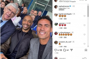 意甲第7轮比赛,科莫主场2-0击败尤文。目前担任科莫俱乐部董事的瓦拉内与温格、亨利一起观看比赛,瓦拉内社媒晒出合照,配文:“传奇!”