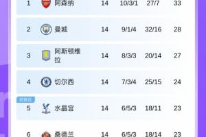 体育资讯12月4日讯 英超第14轮多场比赛结束,阿森纳2-0布伦特福德,切尔西1-3爆冷利兹联,利物浦1-1憾平桑德兰,最新英超积分榜如下: