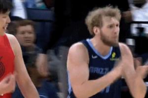 兰代尔没接住球,一旁杨瀚森乐了