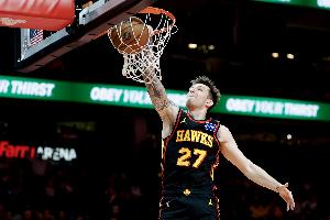 体育资讯12月15日讯 NBA常规赛,老鹰半场59-55领先76人。