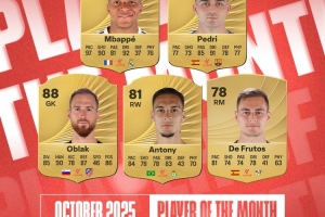 体育资讯10月22日讯 西甲公布了10月份最佳球员的5人候选名单,姆巴佩、佩德里、安东尼在列。