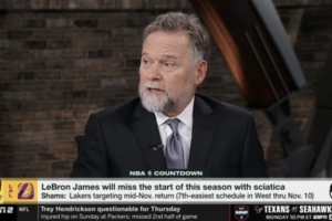 据著名记者Shams报道,湖人和詹姆斯将11月中旬作为其现实的目标复出日期。