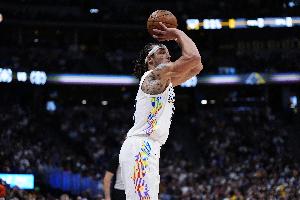 2021年4月13日,勇士116-107掘金,出战36分钟,24中14,三分18中10,53分6篮板4助攻。